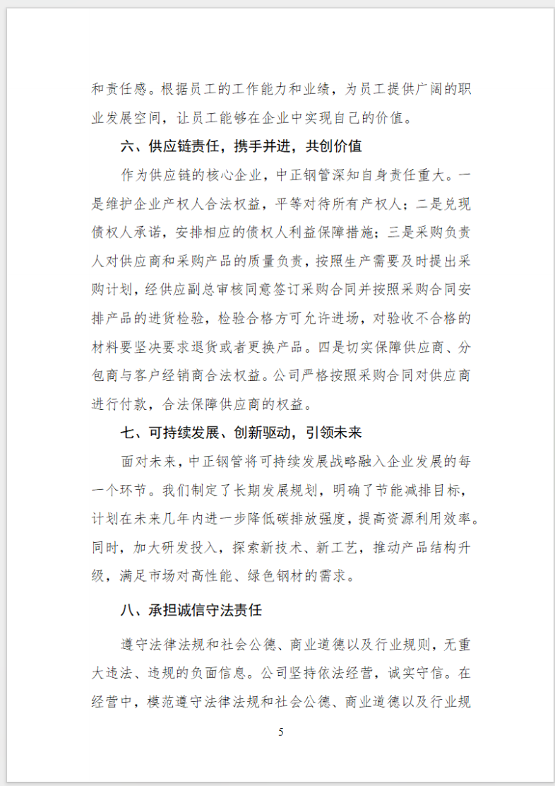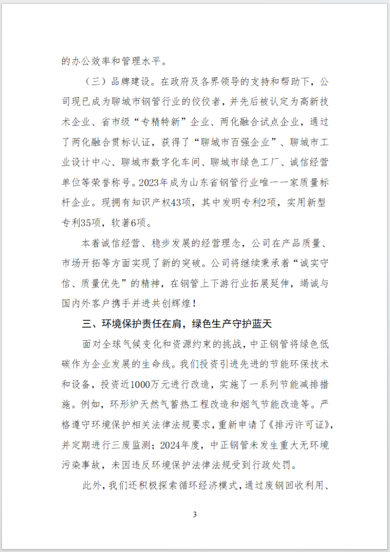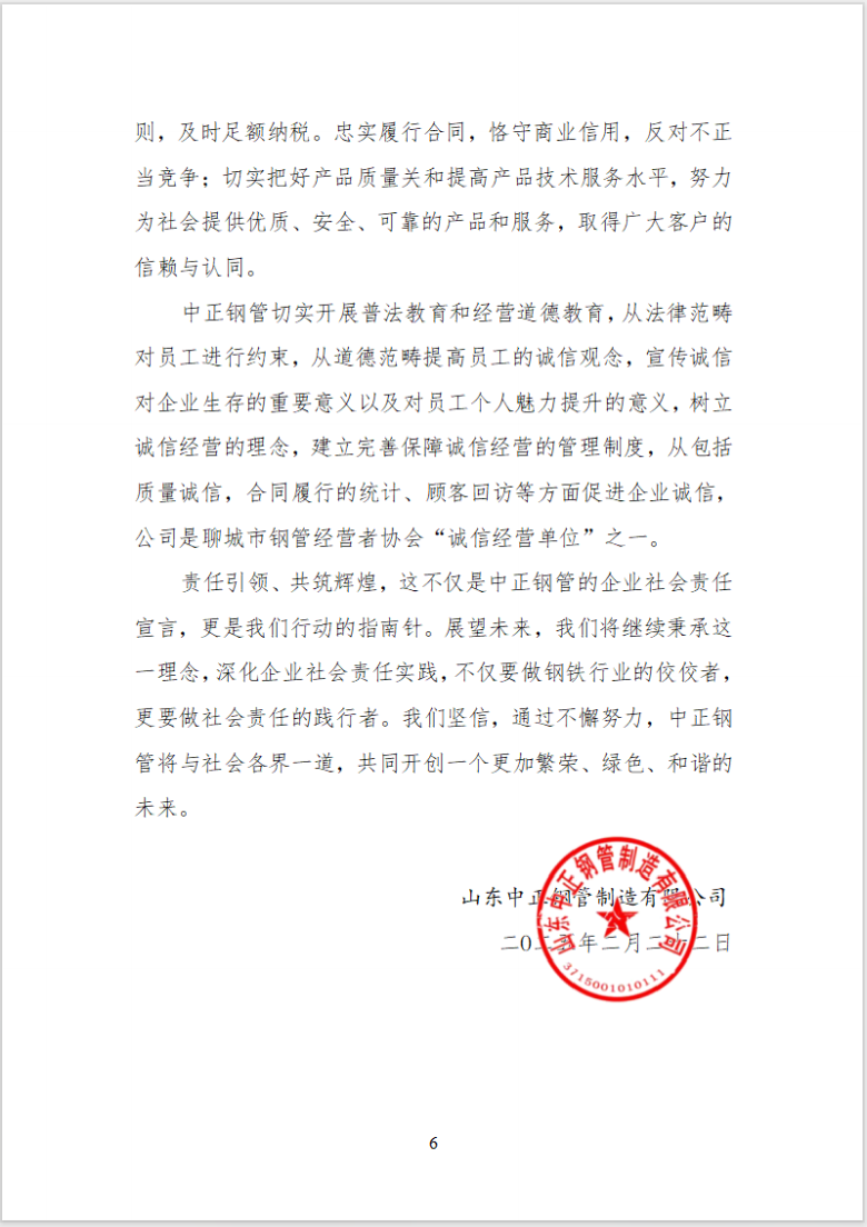 【概要描述】山東中正鋼管制造有限公司2024年社會(huì)責(zé)任報(bào)告
