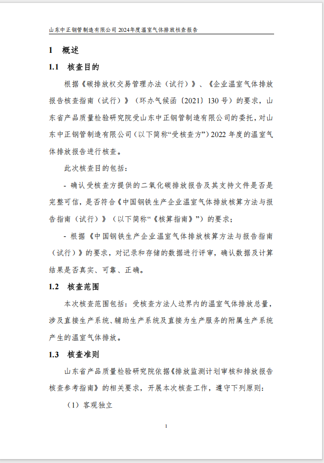 【概要描述】山東中正鋼管制造有限公司2024年度 溫室氣體排放核查報告